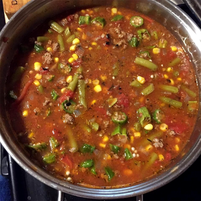 Baza este aproape identică: carne de vită, ceapă, roșii și verdețuri. Practic, dacă ai elimina bamele și ai adăuga borș sau zeamă de lămâie, ai obține o ciorbă clasică de văcuță.