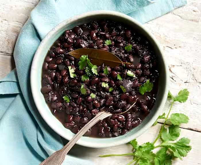 Adaugă fasolea neagră împreună cu o parte din lichidul din conservă. Acest lichid este foarte util deoarece intensifică culoarea preparatului și îngroașă sosul.