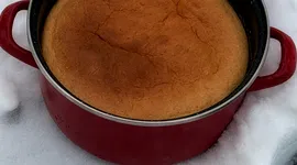Cratița se așază într-o tavă mai mare, în care se adaugă apă, apoi se introduce la cuptor, la 200°C, timp de aproximativ 30 de minute. Între timp, se amestecă toate ingredientele pentru pandișpan. După primele 30 de minute de coacere, compoziția de pandișpan se toarnă peste crema de zahăr ars și se mai lasă la cuptor încă 30–35 de minute, la 180°C.