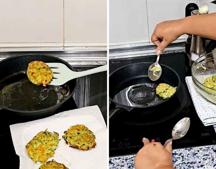 În varianta de post, oul nu poate fi folosit. În plus, dovleceii sunt printre legumele cu cel mai mare conținut de apă.