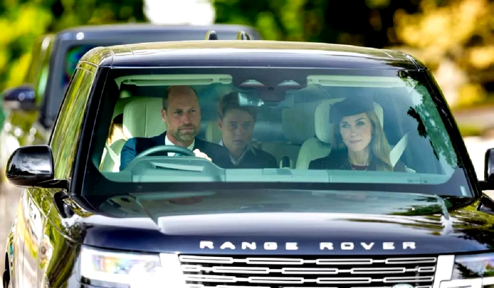 Prințul William a fost surprins conducând un Range Rover negru, având-o pe Kate pe locul din față, zâmbitoare și relaxată. Pe bancheta din spate se aflau Prințul George, Prințesa Charlotte și Prințul Louis, toți vizibil încântați de ieșirea în familie. Charlotte, în vârstă de 10 ani, a părut deosebit de veselă în drum spre biserică.