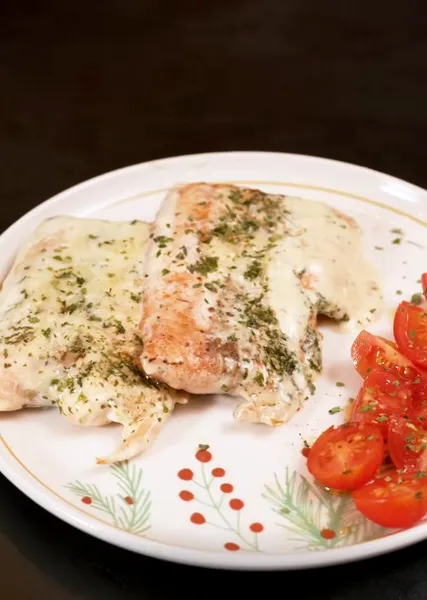 Cum gătește Andreea Ibacka somon cu sos alb. Printre ingrediente sunt și smântâna de gătit și parmezanul