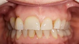 Vă prezentăm cazul pacientei în vârstă de 50 ani (vezi galeria foto), care s-a prezentat în clinica de ortodonție din motive estetice. Pe lângă zâmbetul complet compromis de existența incisivului central macrodont și absența incisivului lateral din cadranul drept maxilar (geminatie 1.1 și agenezie 1.2), linia interincisiva superioară deviată către stânga față de mediană fetei și abraziunea (tocirea) incisivilor agravau și mai mult deficitul pe zona estetică.