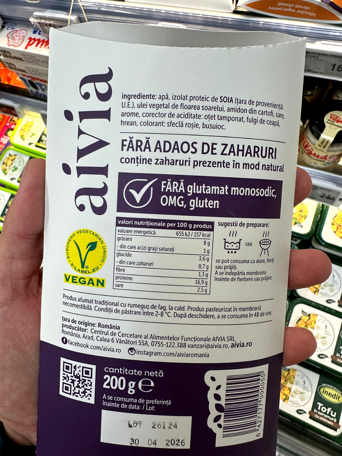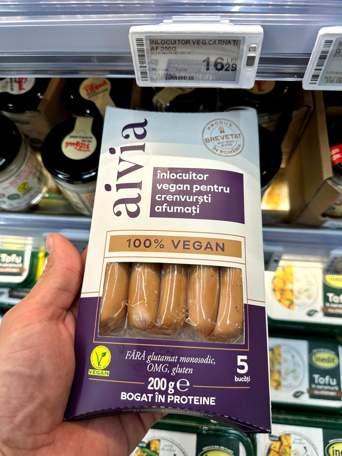 Un exemplu concret îl reprezintă crenvurștii afumați de post disponibili în Carrefour, sub brandul Aivia. Dincolo de ambalajul atractiv și etichetele „fără gluten”, „fără OMG” sau „fără adaos de zaharuri”, lista de ingrediente spune o poveste mai complexă.