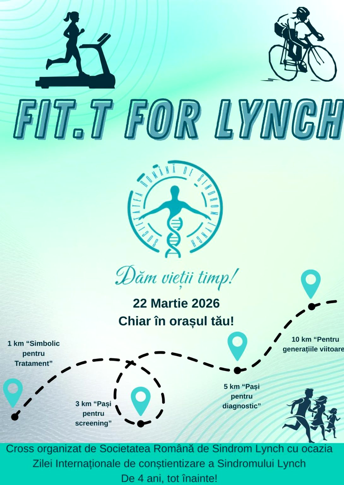 Dr. Oana Voinea, președintele fondator al Societății Române de Sindrom Lynch, subliniază importanța informării publicului despre această predispoziție genetică la cancer: „Sindromul Lynch este încă insuficient cunoscut în rândul populației, deși reprezintă cea mai frecventă predispoziție genetică ereditară pentru cancer. Prin evenimente precum FIT.T for Lynch, ne dorim să încurajăm informarea corectă, testarea genetică acolo unde este indicată și depistarea precoce a persoanelor la risc. Creșterea gradului de conștientizare poate salva vieți, deoarece diagnosticul timpuriu permite implementarea unor programe de screening eficiente și prevenirea unor cancere care altfel ar fi descoperite prea târziu.”