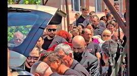 Îmbrăcat cu un costum negru, Alex a făcut un ultim gest romantic pentru regretata lui soție. Vizibil îndurerat, bărbatul a mers în urma trupului soției sale, cu un buchet de trandafiri roșii în brațe, scrie CANCAN.RO.